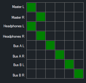Each column represents a source channel, each row represents a destination bus that the channel can be routed to.